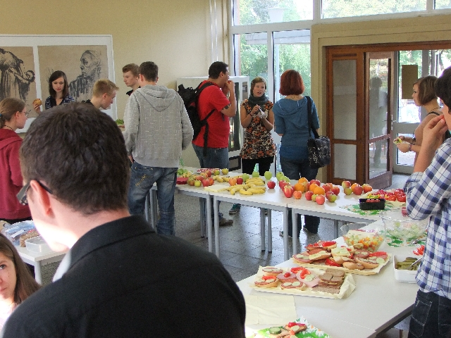 Ein Dank geht auch an die Jahrgangsstufe 12, besonders an Martin Eisoldt und die Grill-AG, die sich in der Mittagspause um die Verpflegung aller Teilnehmenden kümmerte. Es gab Bratwürste und Käse vom Grill, aber auch vielfältige andere Angebote wie Brötchen, Kuchen, Obst und Gemüse, so dass wohl für jeden etwas Leckeres dabei war.